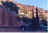 view of the hillside from the porch of Old Tymers Biker Bar.